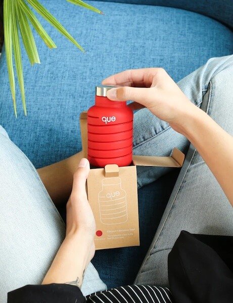 Initially launched on Kickstarter in 2016, que was designed to save space for what matters: your next adventure. So the bottle’s instantly recognizable collapsible style makes it the perfect travel companion. Designed in California and responsibly made in China, the bottles are made from food grade silicone (that’s nontoxic and BPA-free) and stainless steel—both of which are recyclable at special facilities. Plus, que partners with organizations like the Coral Reef Alliance and Rainforest Trust to help raise environmental awareness.