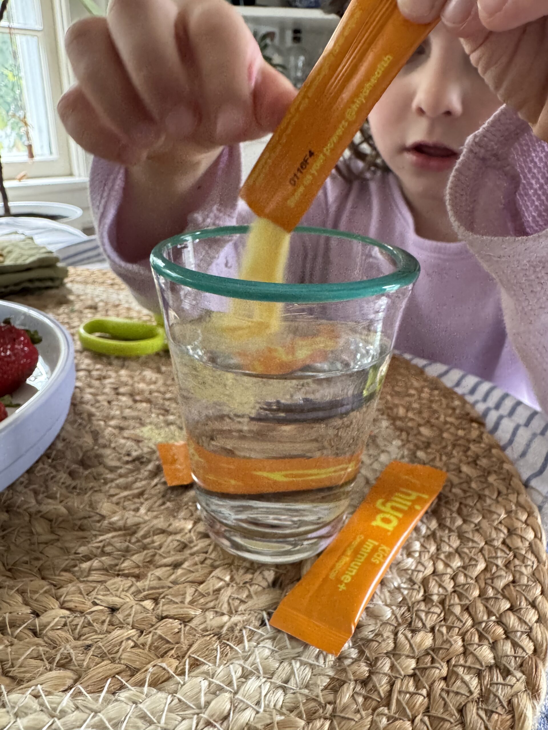 I threw the gummy vitamins away and let Poesy unbox everything herself, telling her that it was her job to be honest about our experience, which meant that she had to be open-minded and try everything more than once, over a few weeks. I know my kid, and as strong-willed and stubborn as she can be, she loves a job and a spotlight. I went in with my expectations low and my hopes high as ever. Could Hiya meet our nutritional needs and compete with the gummy she was used to? Would she actually drink a green powder?
