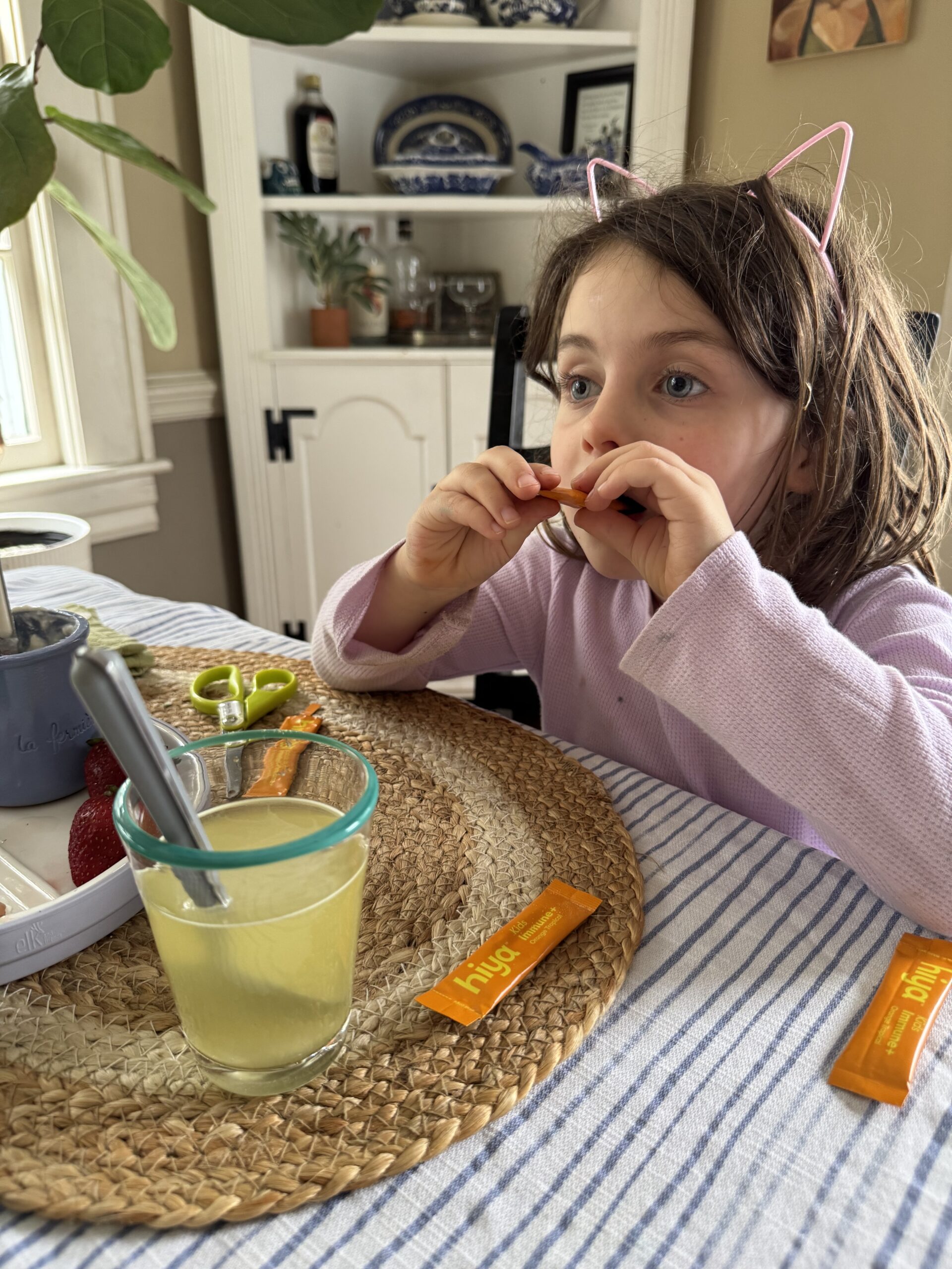 When The Good Trade had a chance to review Hiya, I jumped like a wedding guest during the bouquet toss in a ’90s rom-com. “Mine!” I said, “Me!” We were about to start kindergarten, and it had been a few months since Poesy was diagnosed with type 1 diabetes. She had some tooth decay we were monitoring, plus a whole new lifestyle and way of thinking about food that made it the perfect time to try new things. Since sickness can throw a real wrench into insulin therapy, I am pretty desperate to avoid the back-to-school plague we usually have from August through February, so in addition to the Kids Daily Multivitamin and the Kids Daily Greens + Superfoods for general nutritional supplementation, I also picked the Kids Daily Probiotic and the Kids Immune Sticks.